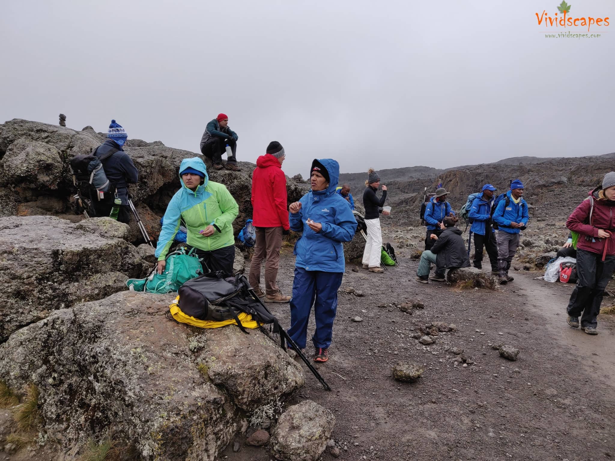 We left Karanga and hit the junction which connects with the Mweka Trail. We continue up to the rocky section to Barafu Hut. At this point, we have completed the Southern Circuit, which offers views of the summit from many different angles. The two peaks of Mawenzi and Kibo are viewable from this position.