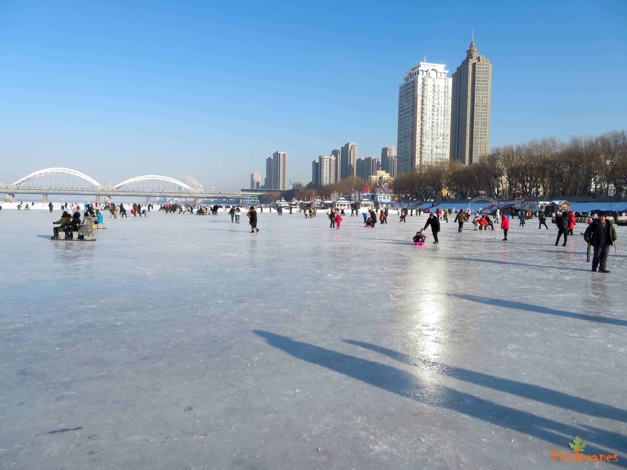 After a wonderful night’s sleep, we explore the streets of Harbin and the frozen river that has now become a playground for winter sporting activities.